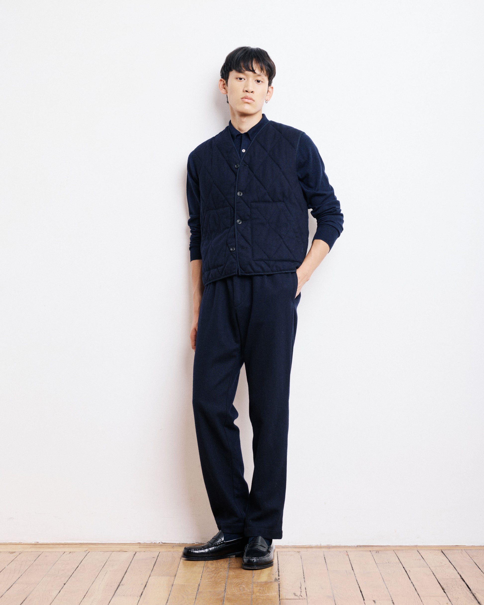 Gilet Homme en Flanelle de Laine Bleu Marine Vince